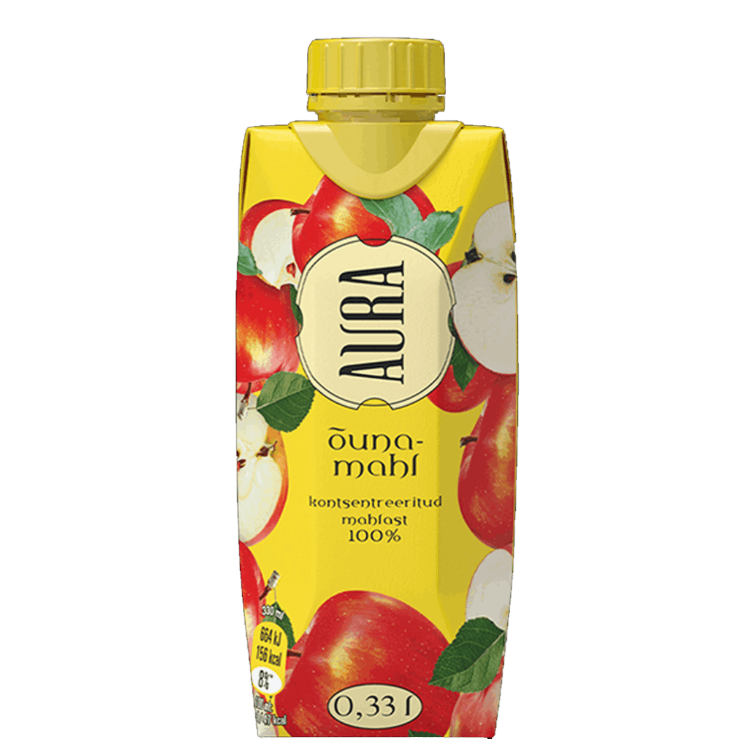 You can make a refreshing alcohol-free cocktail by adding carbonated Aura cowberry or lemon water to Aura apple juice. The 100% juice content means that it is pure juice, i.e. juice to which no additives (incl. sugar) have been added.